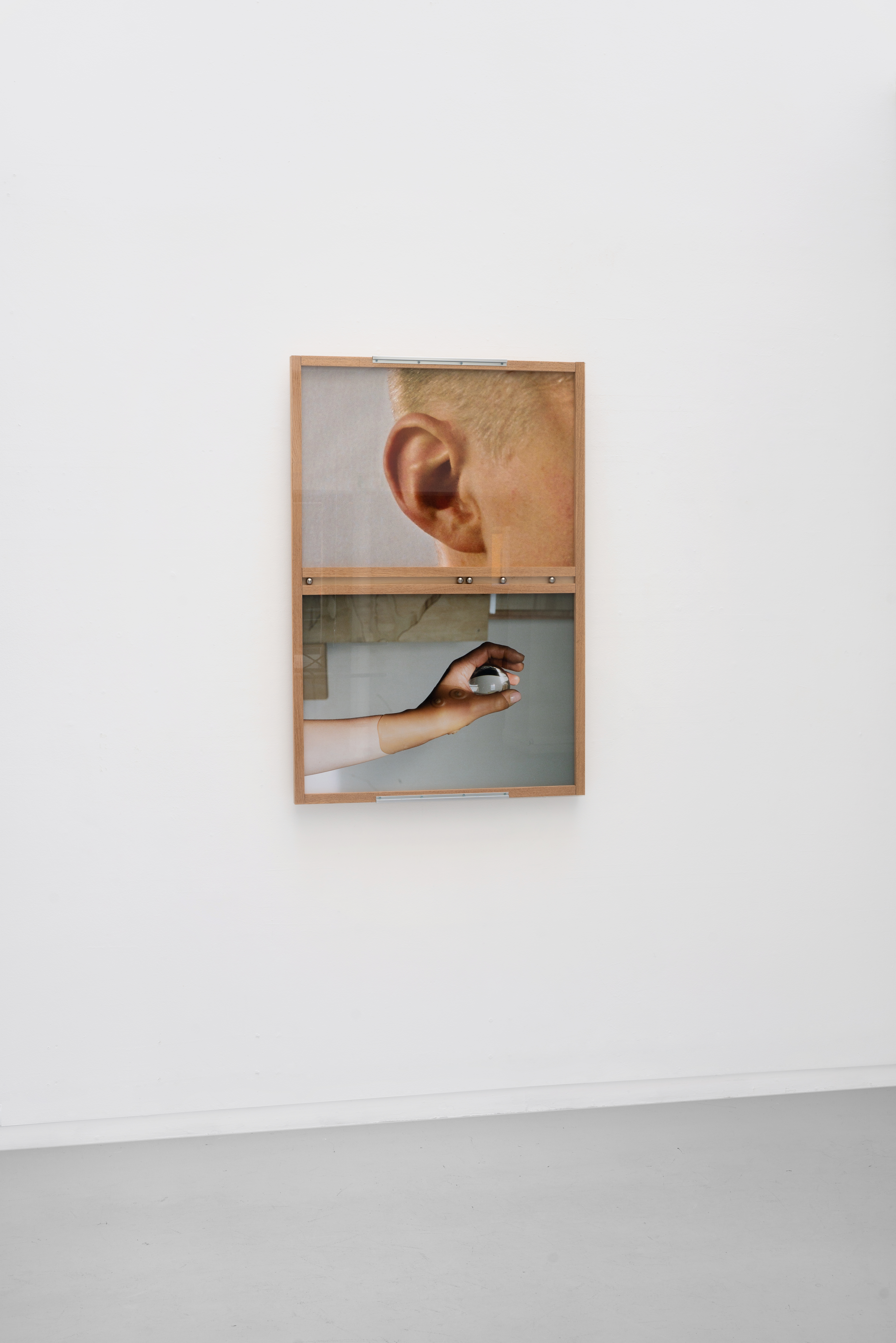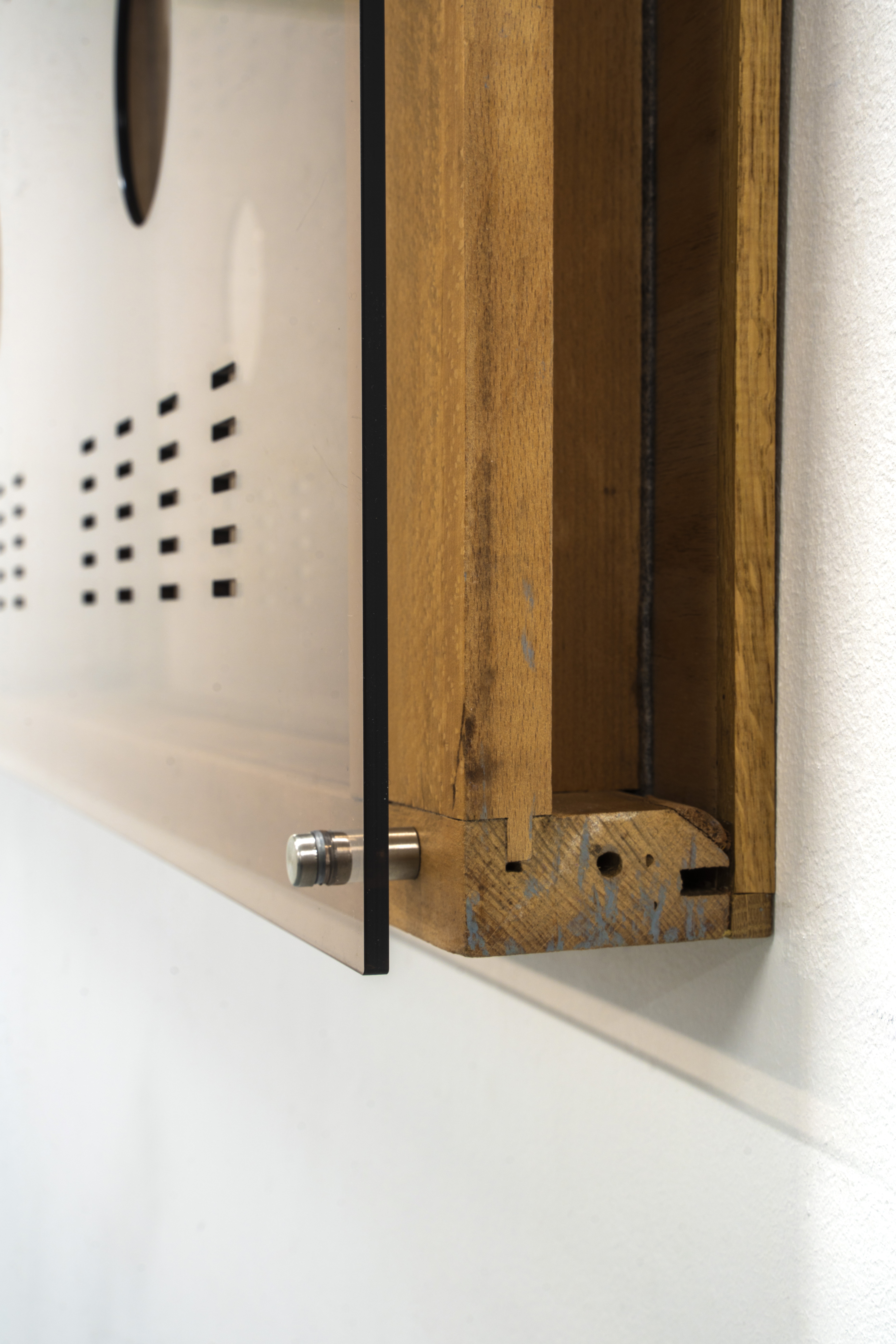 wood, glass, uv print on acrylic glass, aluminium bolts.